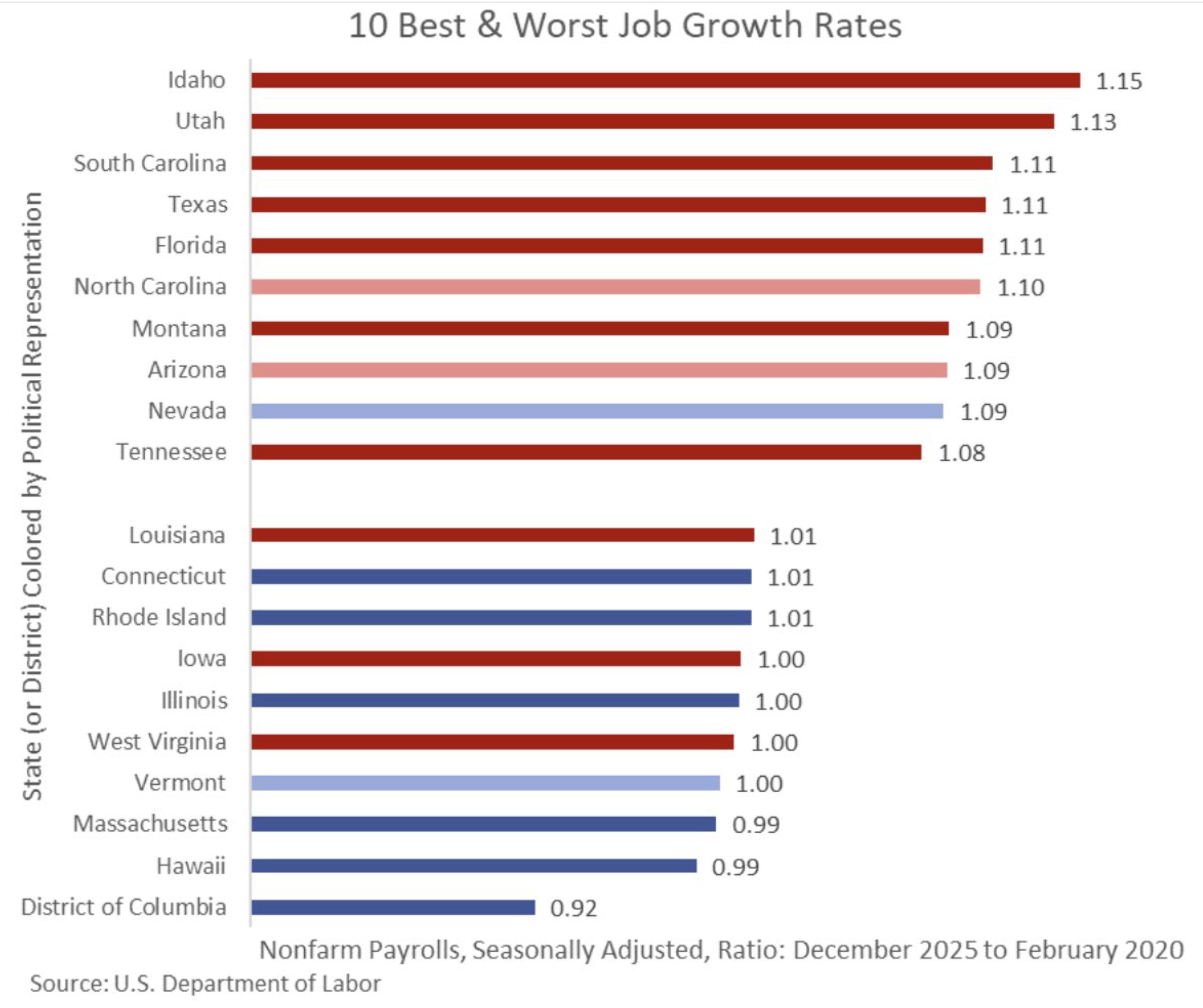 7 of the top 10 states for job growth are under unified Republican control